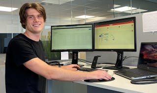 Nach seinem Ausbildungsende übernimmt er nun Aufgaben im Bereich Abteilung MCS, lernt bestehende Softwareumgebungen tiefergehend kennen und macht sich mit den Entwicklungsumgebungen der Steuerungs- und Visualisierungssoftwaren FlowMate und MINDA MoveIT vertraut.