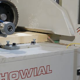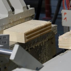 Für das DUOZINK-Taktzentrum wurde die Keilzinkentechnologie weiterentwickelt und die notwendigen Prozessschritte - Fräsen - Klebstoffauftrag – Pressen - in verschiedene Stationen unterteilt.