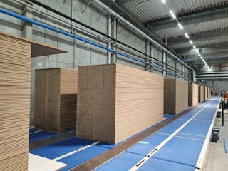 Transport von Rohplatten in der Holzwerkstoffindustrie