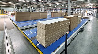 Zwischenlager in der Holzwerkstoffindustrie haben großen Einfluss auf die Qualität der Produkte und die Arbeitsabläufe innerhalb der Prozesskette. So reifen Holzwerkstoffplattenstapel im Zwischenlager nach und Ware wird für die Weiterverarbeitung vorkommissioniert.
