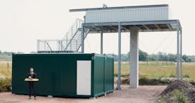 Der Schulungsraum, der sich ursprünglich aus fünf Containern zusammensetzte, musste auf zwei reduziert werden. Jedoch lässt diese Bauweise eine Erweiterung auf fünf Container perspektivisch zu.