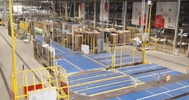 Auf der zweiten Ebene des Zwischenlagers (Mezzanine) lagert Peterson Klischees und Farben für die Verarbeitungsmaschinen, die über einen Vertikalheber die obere Ebene verlassen und über einen Transferwagen zu den Verarbeitungsmaschinen transportiert werden.