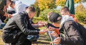 Aus Bambusstöcken und Gummibändern musste beispielsweise ein Turm gebaut werden, an welchem zum Schluss eine Fahne weht. Außerdem wurde aus Rundhölzern und Bootsseil eine Trage gebaut, stabil genug, um damit ein Teammitglied durch einen Parcours zu tragen. Auch verbundene Augen, Ballwurfspiele und gemeinsames Ausbalancieren waren Bestandteil der Aufgaben.