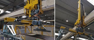 Die Hauptstruktur des Leerpaletteneinlegers, bestehend aus Hubelement, Drehvorrichtung und Palettengreifer, konnte gegen eine konstruktiv überarbeitete Version ausgetauscht werden. Dadurch ergeben sich zukünftig folgende Mehrwerte: