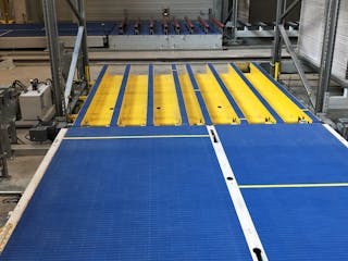 Die Verarbeitungsmaschinen werden entsprechend den Vorgaben der ERP-Systeme rechtzeitig mit Ware zur Verarbeitung versorgt. Im Anschluss an den Verarbeitungsprozess werden die Wellpappenstapel von den Maschinen abtransportiert und der Palettensicherung zugeführt. Dort wird automatisch die entsprechende Palettenart bereitgestellt und die Daten für die Umreifung stehen dem Prozess zur Verfügung. Die fertig gesicherte Ware gelangt ins Fertigwarenlager und ist zur Auslieferung bereit.