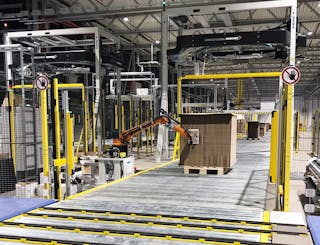For machine operators’ relief, we offer you the possibility to attach pallet slips to your finished goods with the help of a robot. This can be done after palletizing, either in front of or behind the strapping / wrapping machines.