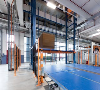 Vertical lifts connect two or more levels in order to return tools, printing plates and colors back into the warehouse. They can also be used for heavy piece goods.
