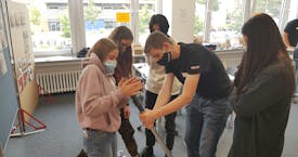 The learning factory shows the operational company processes starting with the development of a product to its marketing. Pupils from Minden schools (from the 8th class onwards) develop, produce and market a product being provided by several companies.