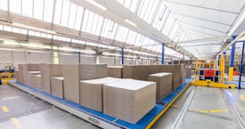 Depending on the machine, stacks of different widths are processed. The different widths are also considered for the storage in the three-level warehouse, as side-by-side plastic chain conveyors in the warehouse can be controlled individually or coupled to make optimum use of the available storage area depending on the width of the orders. This means that storage lines of different widths are always considered in the machine storage. The plastic chain conveyors on the first and second floor are integrated in the steel structure. Both elements were designed and supplied by MINDA from a single source. The gentle transport of goods on the integrated plastic chain conveyors avoids the "sheet walk effect" and thus damage of the stacks during storage process.